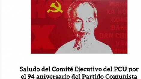 Partido Comunista de Uruguay felicita 94.° aniversario del Partido Comunista de Vietnam