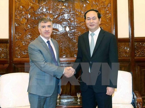 (VOVworld) – El presidente vietnamita, Tran Dai Quang, agradeció este miércoles al embajador argentino, Claudio Gutiérrez, por su contribución al fortalecimiento de la amistad y cooperación entre los dos países, en un encuentro de despedida del diplomático por el fin de su misión.