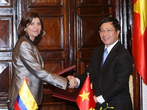 El canciller Pham Binh Minh y su homóloga colombiana conversan