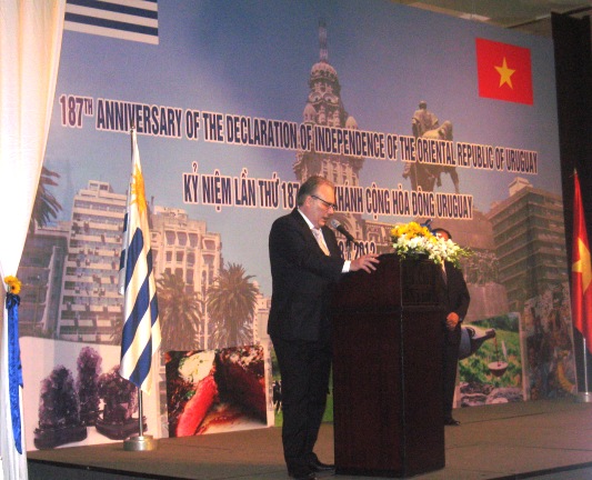 En el discurso de bienvenida, el embajador uruguayo, Carlos Irigaray Santana, recordó la gesta histórica, bajo la dirección del héroe nacional Juan Antonio Lavalleja que se levantó contra el yugo del colonialismo para lograr independencia y libertad. Al mismo tiempo expresó su solidaridad y admiración por el pueblo de Vietnam, una nación llena de coraje y deseo de libertad que atesoran.