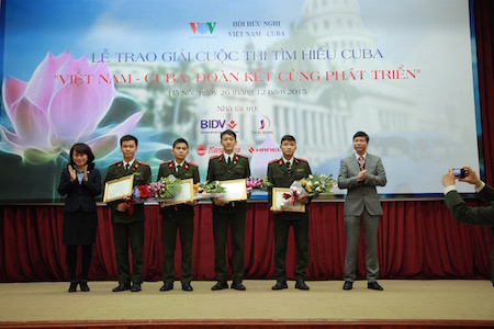 Participaron en la ceremonia la vicepresidenta del Parlamento de Vietnam y presidenta de la Asociación de Amistad Vietnam - Cuba, Nguyen Thi Kim Ngan, el director general de VOV, Nguyen Dang Tien y el embajador cubano en Vietnam, Herminio López Diaz. Durante 3 meses, del 24 de agosto al 15 de noviembre de 2015, el comité organizador recibió un total de 286 trabajos concursantes, incluyendo 280 individuales y 6 de colectivos, con más de 4 mil participantes procedentes de las 36 provincias y localidades en el país. Después de más de 2 meses de trabajos exhautivos, el jurado decidió otorgar el primer premio al grupo Sao Vang C500 (Estrella amarilla C500) de la Academia de Seguridad Popular, Ministerio de Seguridad Pública, dos segundos premios pertenecen a Hoang Thi Thu Trang, una participante de Ciudad Ho Chi Minh y al grupo Nhiet Huyet (Voluntad) de dicha academia. Mientras, dos terceres premios se adjudican a Nguyen Huu Thuy de la provincia sureña de Dong Nai y Le Ngoc Quynh de Hanoi.