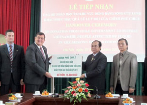 El embajador de Chile en Hanói, Fernando Urrutia, entregó este jueves 15 mil dólares a la Cruz Roja de Vietnam para apoyar a las víctimas de las graves inundaciones en el delta del río Mekong en los últimos tiempos.
