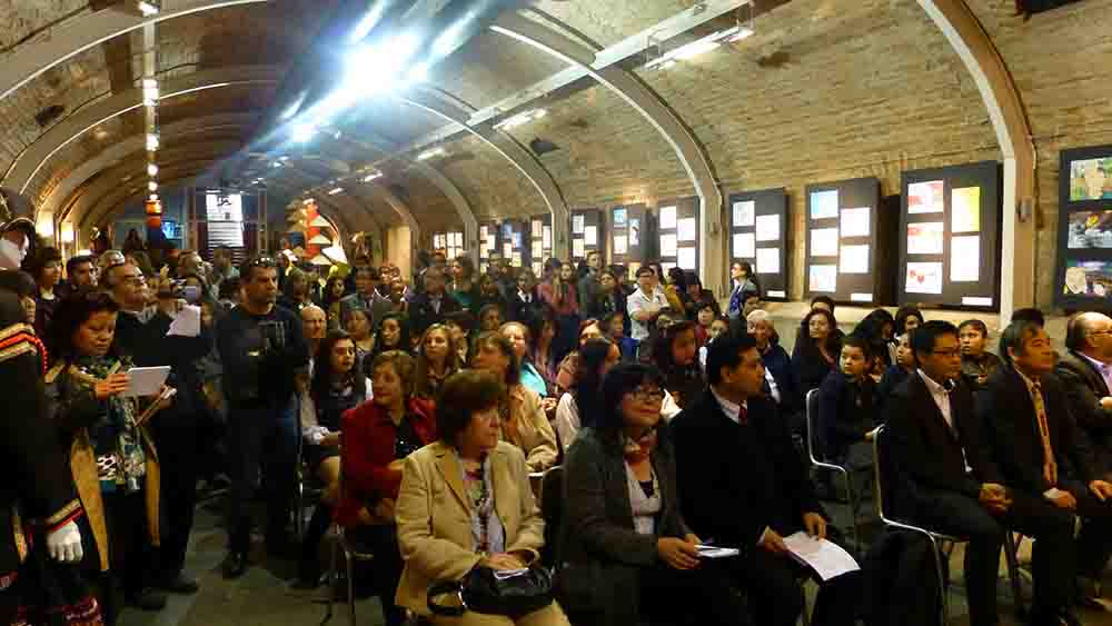 Ceremonia de inauguración de la exposición conjunta de obras donadas por niños y artistas de APECH. (Fotografía de cortesía de Patricia Abarzúa) |