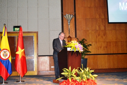 El Encargado de Negocios de la Embajada de Colombia en Vietnam, Carlos Albán Franco interviene en el evento