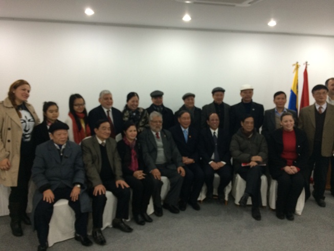 Los delegados venezolanos y vietnamitas en la ceremonia