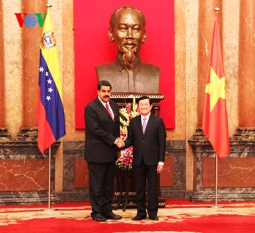 (VOVworld) - Luego de su llegada a Hanoi este domingo, el presidente venezolano, Nicolás Maduro Moros se reunió el lunes con su homólogo vietnamita Truong Tan Sang. En las conversaciones posteriores a la ceremonia de bienvenida, Nicolás Maduro afirmó que el gobierno venezolano concede gran importancia a esta visita, anunciando que tenía un programa de trabajo muy ambicioso.