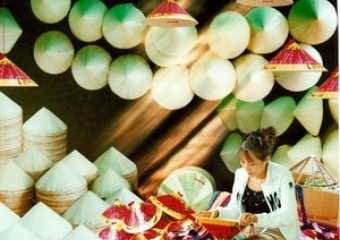 Una artesana vietnamita con sombreros cónicos
