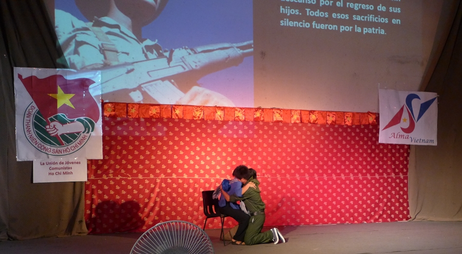 Con 10 actuaciones de canto y danza referidas a la historia de un recorrido de los soldados vietnamitas por diferentes partes del país, los estudiantes vietnamitas invitaron a los espectadores a un interesante viaje a lo largo de su Patria, desde las zonas montañosas en el Noroeste, la arrocera provincia de Thai Binh, y la tierra de Kinh Bac, hasta la ciudad imperial de Hue en el Centro y el fértil delta del río Mekong en el Sur.