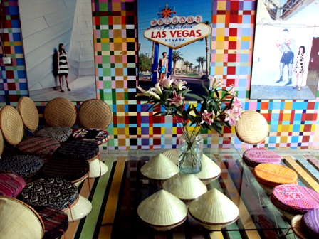 de Vietnam como sombreros cónicos, cestas y brocados