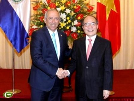 (VOVworld) - La delegación parlamentaria salvadoreña con su presidente Sigfrido Reyes al frente partió este martes de Ciudad Ho Chi Minh, concluyendo exitosamente su visita oficial a Vietnam por invitación del presidente de la Asamblea Nacional Nguyen Sinh Hung. Durante su permanencia de 5 días en nuestro país, del 6 al ll de junio, el dirigente del país centroamericano sostuvo conversaciones con su homólogo anfitrión Nguyen Sinh Hung y efectuó visitas de cortesía al secretario general del Partido Comunista Nguyen Phu Trong y el presidente de la Republica Truong Tan Sang.