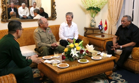 (VOVworld)-El Ministro de las Fuerzas Armadas Revolucionarias de Cuba, general Leopoldo Cintra Frías visitó este 14 de enero la embajada vietnamita en La Habana, en donde apreció experiencias de Vietnam en su proceso de renovación, destacando que son preciadas referencias para la actualización del modelo de desarrollo de Cuba. El ministro expresó su admiración por los grandes logros que Vietnam ha obtenido en la construcción y defensa de la Patria.