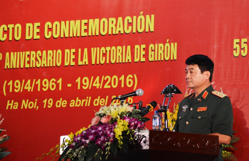 (VOVworld)- El 55 aniversario de la Victoria de Playa Girón (19 de abril de 1961), una de las hazañas más extraordinarias del pueblo cubano en su lucha por la independencia, se conmemoró este martes en Hanoi. Al intervenir en el acto, el subjefe del Estado Mayor general del Ejército Popular de Vietnam, coronel general Vo Van Tuan, enfatizó el significado de este glorioso triunfo en la lucha por la independencia y liberación nacional del pueblo cubano, en particular, y de América Latina, en general, el cual marcó un punto de inflexión decisiva al lleva a Cuba por el camino de la construcción del socialismo.