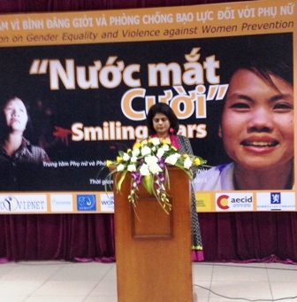 Al hablar en la ceremonia, Pratibha Mehta, Coordinadora Residente de la ONU en Vietnam, dijo:"Como todos sabemos, la educación y la sensibilización de la comunidad es muy importante para prevenir la violencia contra las mujeres y las niñas, además de abordar las causas fundamentales de la discriminación y la desigualdad de género. Nuestra organización con sede en Vietnam está dispuesta a apoyar estos esfuerzos para que obtengamos ideas más creativas, que contribuyan a superar las consecuencias de la violencia familiar ".