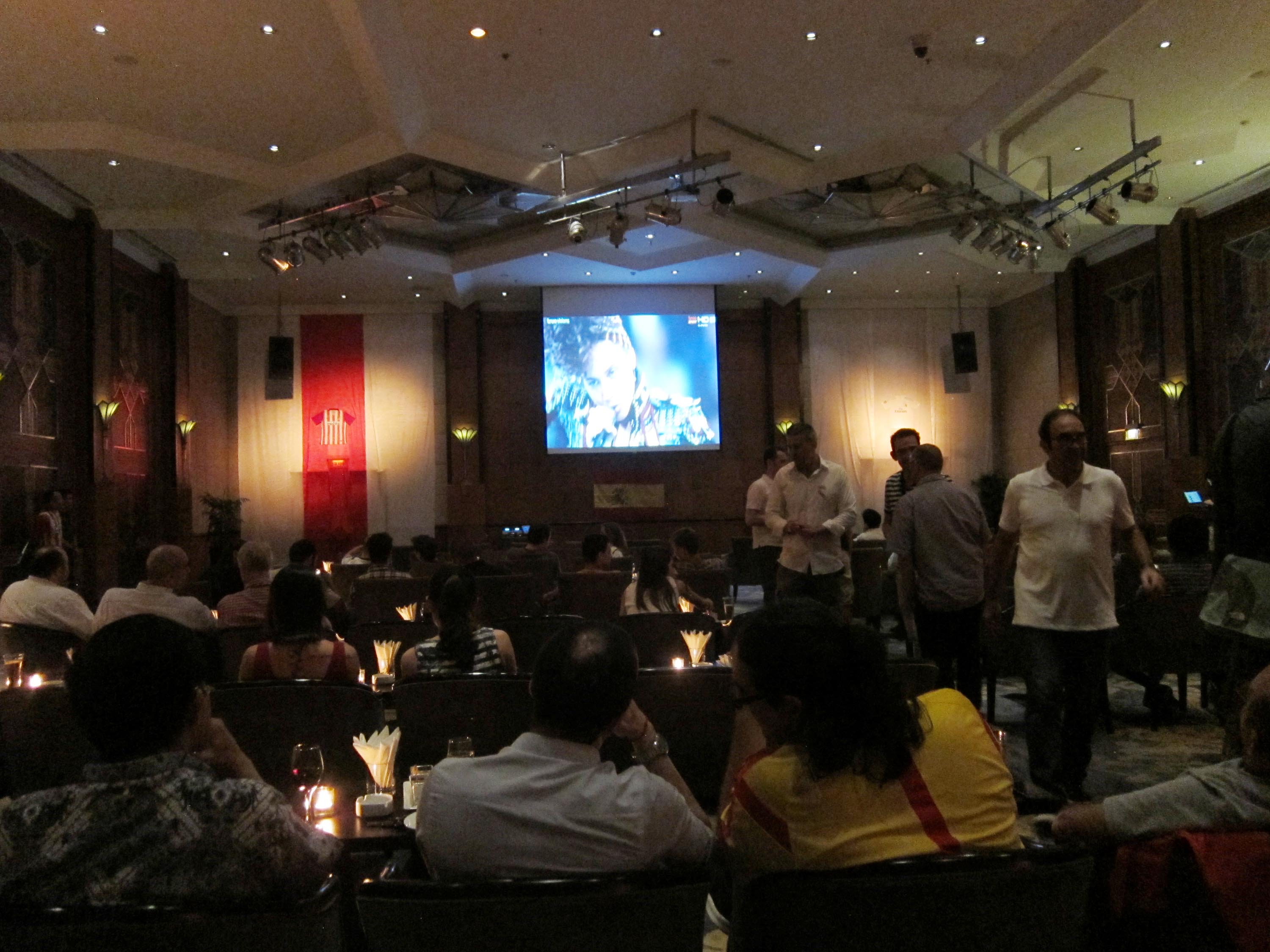 A las 1h15, el séptimo piso del hotel Meliá Hanoi estaba invadido por un ambiente estimulante. Más de 100 españoles y amigos internacionales se concentraron en un espacio con capacidad para 600 personas, en espera del comienzo del partido. La mayoría de los participantes en la final de la Liga de Campeones de la UEFA 2013-2014, tuvieron una nueva oportunidad para juntarse en el mismo lugar y disfrutar del juego con manjares típicos de España. Después de saludar a los invitados, el director general del hotel Meliá Hanoi, Guillermo Pantoja expresó lo siguiente: “Estamos juntos y vamos a pasar un rato agradable en donde vamos a ver el partido, compartir y disfrutar de la emoción del juego. Lo más importante de este partido es que quien quiera que gane, será un equipo español y nos hará sentir muy feliz”.