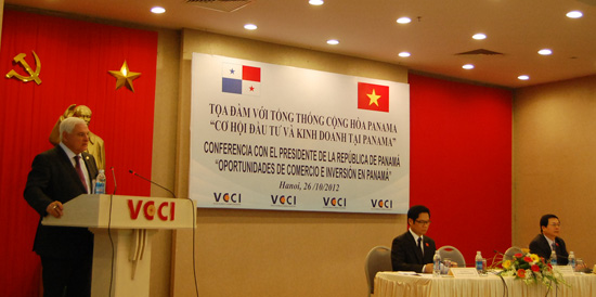 La víspera, en una mesa redonda organizada por la Cámara de Comercio e Industria de Vietnam, en Hanói, el mandatario Ricardo Martinelli presentó al empresariado vietnamita las potencialidades y oportunidades de negocios e inversiones en Panamá, y reiteró la disposición de este país de servir de puente de acceso de mercancías vietnamitas al mercado latinoamericano de 600 millones de consumidores.