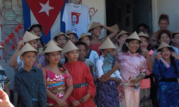Niñas y niños de la Escuela primaria “Vietnam Heroico”, acudieron al acto, vestida de vietnamitas (Foto: José Llamos)