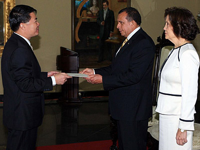 El embajador vietnamita Le Thanh Tung presenta las cartas