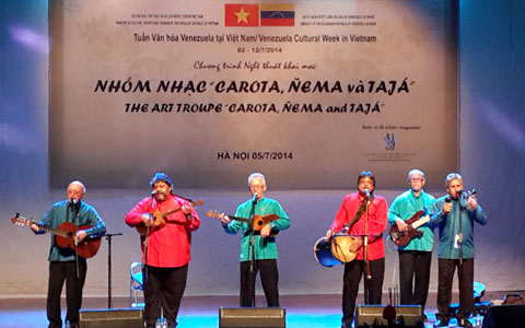 (VOVworld) – El espectáculo artístico ofrecido la víspera al público de Hanoi por el grupo “Carota, Ñema y Tajá” dio inicio a la Semana de Cultura de Venezuela en Vietnam.