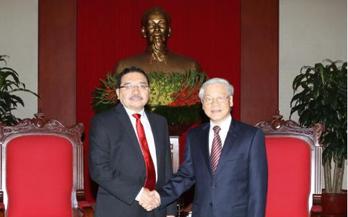 El dirigente político subrayó que Vietnam siempre considera la consolidación y el desarrollo de las relaciones amistosas y la cooperación con los países amigos tradicionales en América Latina entre ellos El Salvador y expresó el deseo de impulsar más fuertemente los nexos entre el PCV y el FMLN en calidad de ambos partidos gobernantes. A través de esto se incrementarán los vínculos estatales, sobre todo la cooperación económica, comercial e inversionista por los intereses de los dos pueblos vietnamita y salvadoreño.