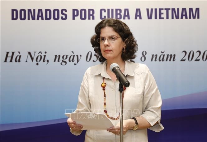 La embajadora de Cuba en Vietnam, Lianys Torres Rivera, en el acto de entrega de medicamentos. (Foto: VNA) |