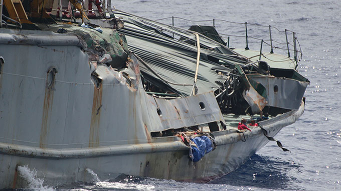 Un barco de la Guardia Costera vietnamita quedó averiado tras crueles embestidas