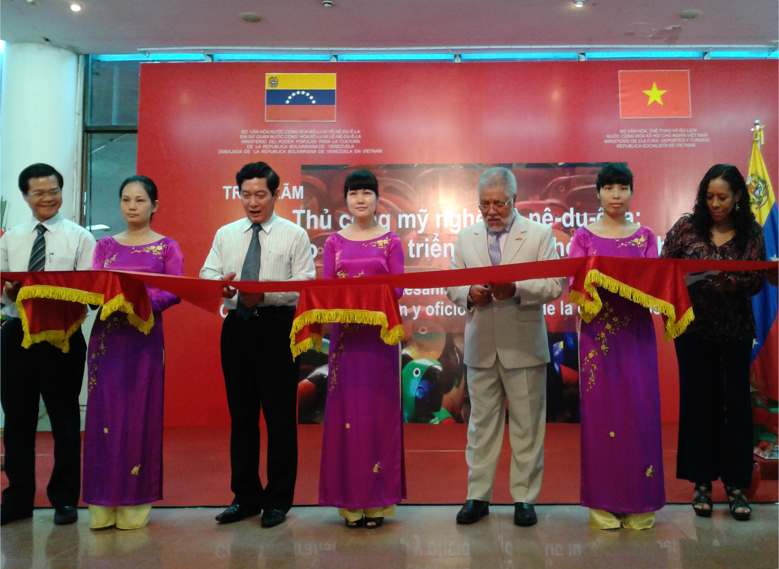 (VOVworld) – En ocasión del aniversario 25 del establecimiento de las relaciones diplomáticas entre Vietnam y Venezuela, se inauguró esta mañana en Hanoi una exposición de artesanía venezolana con el tema: “Creación, transformación y oficio forjador de la cultura liberadora”. Más de 100 muestras del país bolivariano, presentadas en la exhibición representan la excelencia de los artesanos venezolanos cristalizada en cada producto. En el acto, el viceministro de Cultura, Deportes y Turismo de Vietnam, Huynh Vinh Ai apreció la celebración del acontecimiento considerado como una ocasión para que los vietnamitas profundicen sus conocimientos sobre las obras de bellas artes y artesanía del país bolivariano.