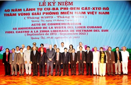 Con anterioridad, tuvo lugar en la noche del 19 de septiembre en Quang Tri el acto conmemorativo del aniversario 40 de la visita histórica del líder cubano Fidel Castro, a las zonas liberadas en Vietnam del Sur, el 15 de septiembre de 1973. En la ceremonia, el viceprimer ministro Nguyen Xuan Phuc, reiteró que el viaje de Fidel Castro, un gran amigo del pueblo vietnamita y el primer estadista que escaló las zonas en Vietnam del Sur inmediatamente después de que se habían liberadas, estimuló el espíritu combativo de los vietnamitas para obtener la reunificación nacional. Phuc continuó: “Hoy hacemos un recuento sobre este acontecimiento histórico para reafirmar las políticas invariables de Vietnam de tomar muy en cuenta las relaciones con Cuba y otros amigos tradicionales en el mundo, considerándolas indispensables en nuestros lineamientos diplomáticos en la actual integración internacional. Nos esforzamos por consolidar sin cesar la cooperación política entre ambas naciones en beneficio de la empresa de desarrollo en cada una”.