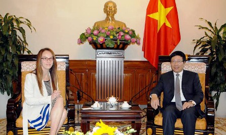 (VOVworld) -Al recibir este viernes a la presidenta del Comité de Relaciones Exteriores del Senado mexicano, Gabriela Cuevas Barrón al frente de una delegación participante en la Asamblea 132 de la Unión Interparlamentaria, a inaugurarse mañana en Hanoi, el viceprimer ministro y canciller Pham Binh Minh instó a la promoción del intercambio de visitas de diferentes niveles para consolidar el entendimiento mutuo y acelerar el perfeccionamiento del mecanismo de la cooperación bilateral, en el contexto en que ambas naciones celebrarán el aniversario 40 de sus relaciones diplomáticas.