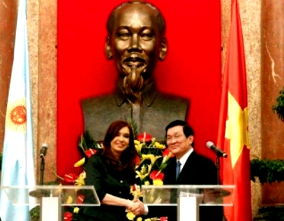 En el intercambio con el presidente de la República, Truong Tan Sang en la última jornada de su visita, la mandataria argentina expresó su admiración ante la lucha heroica del pueblo vietnamita por la independencia y la libertad y el proceso de 25 años renovadores. Por su parte, Sang reafirmó la consideración y el deseo de profundizar las relaciones de asociaciones estratégicas bilaterales. En cuanto a temas regionales e internacionales de interés común, ambas partes respaldaron la solución por vía pacífica de las disputas soberanas según las leyes internacionales, así como que continuarán consultando y apoyándose mutuamente en las organizaciones mundiales y los foros multilaterales como la ONU, la Organización mundial del Comercio, el Foro de Cooperación del Este asiático-América Latina, entre otros, para defender los beneficios recíprocos y elevar la posición de cada nación en la arena internacional.