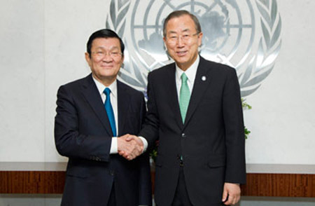 ![]() El presidente vietnamita Truong Tan Sang y el secretario general de la ONU, Ban Ki-moon |