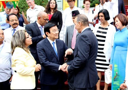 (VOVworld) – El presidente de Vietnam Truong Tan Sang sostuvo el 9 de septiembre en el Palacio Presidencial, un encuentro amistoso con los delegados de la séptima Conferencia Regional Asia Pacífico de Solidaridad con Cuba.