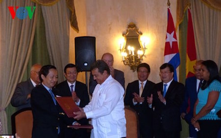 (VOVworld) - El presidente vietnamita, Truong Tan Sang, al frente de una delegación de alto nivel, partió el 30 de septiembre de la capital cubana, La Habana, cumpliendo exitosamente con la visita a este país antillano según la invitación de su homólogo, Raúl Castro Ruz. Durante su estancia en Cuba, el presidente vietnamita asistió al Foro de Empresas Vietnam – Cuba, donde afirmó que esta actividad contribuyó a brindar más oportunidades de inversiones y negocios en cada país, impulsando las relaciones bilaterales de manera más práctica y eficiente. Destacó que las dos partes deben crear más pasos de apertura en los sectores pilares como materiales de construcción, infraestructura, telecomunicaciones, explotación petrolera, entre otros.