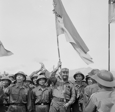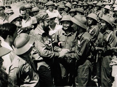 Fidel Castro saluda a los combatientes vietnamitas en el frente del sur