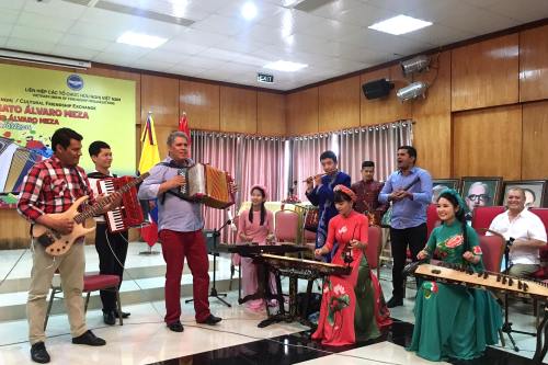 ![]() Los artistas colombianos y vietnamitas en el intercambio musical