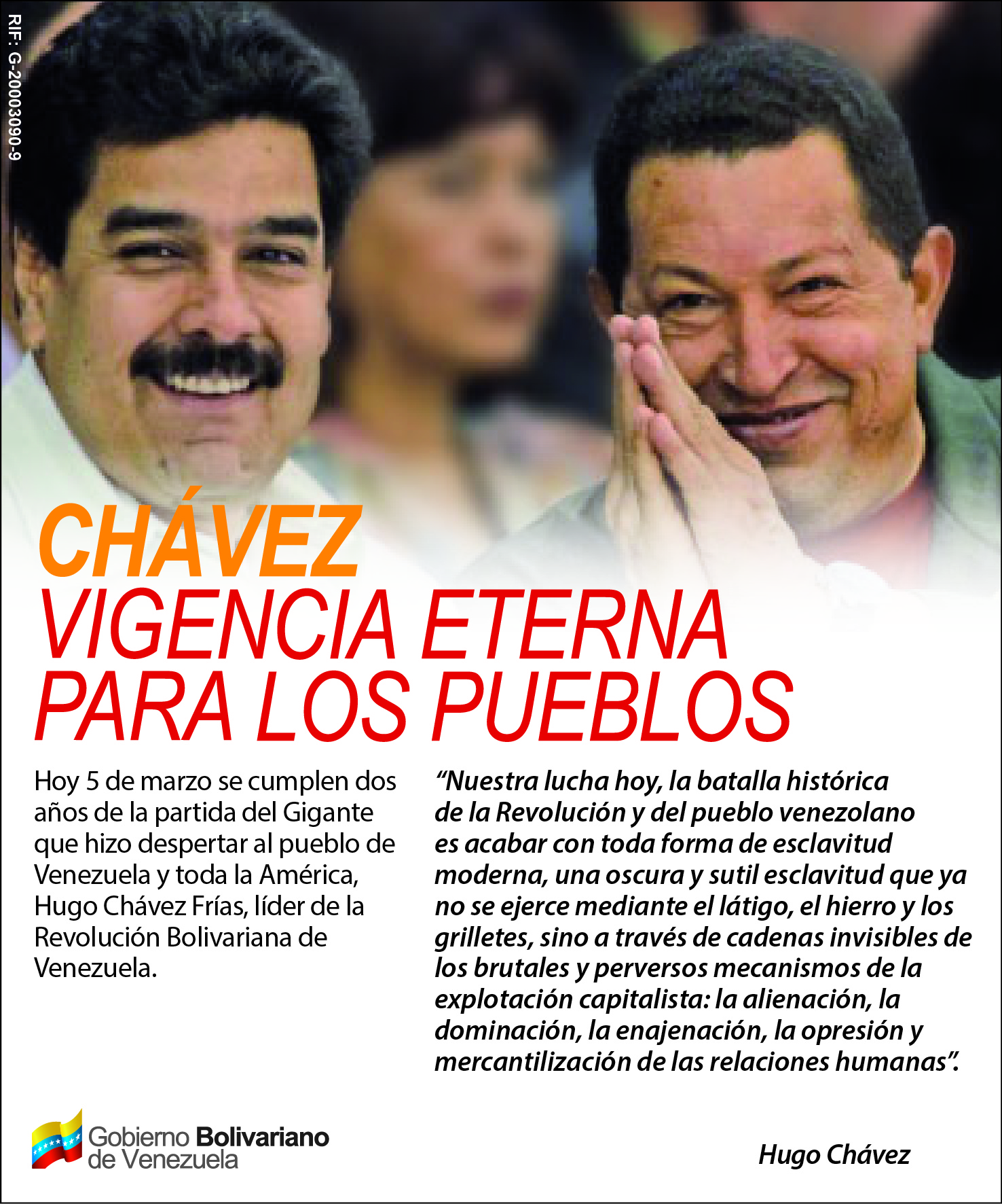 En este acto se presentó también el Libro Azul del Comandante Hugo Chávez en versión vietnamita. Entretanto en Venezuela comienza del 5 al 15 de marzo una serie de actividades políticas, sociales, científicas y culturales en conmemoración de los dos años de la desaparición física de Hugo Chávez. El Partido Socialista Unido de Venezuela (PSUV) presidirá un foro en Caracas exhortando a la participación popular en los actos en homenaje póstumo al héroe que ha traído a su pueblo la autodeterminación y valores libertadores de la Patria.