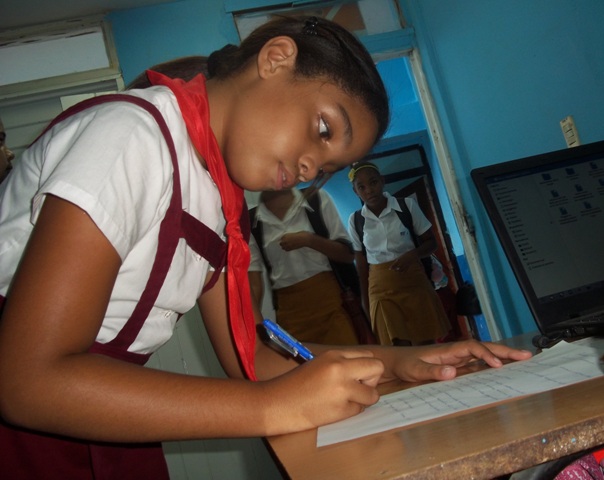 La niña partió a la carrera por uno de los pasillos de la escuela primaría de la ciudad de Guantánamo, en la que estudian más de 250 pioneros entre los grados primero y sexto. La seguí con la vista y con mis sus pasos, hasta llegar a la puerta del local donde penetró la pequeña.