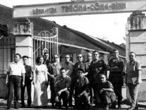 Médicos españoles ante la puerta del Hospital de Truong Cong Dinh