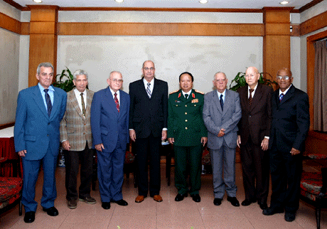 El teniente general Dao Duy Minh fotografiado junto a veteranos cubanos