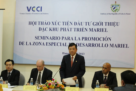 (VOVworld) – Una conferencia titulada: “Promoción inversionista para la zona especial de desarrollo Mariel” se realizó el 18 de septiembre en Hanoi para presentar las potencialidades de esta área. Organizada por la Cámara de Comercio e Industria de Vietnam, el primer país elegido por Cuba para proponer sobre la zona de Mariel, la reunión fue una buena oportunidad inversora para empresas nacionales, especialmente las de construcción, transportación y procesamiento de productos exportables. Hoang Van Dung, vicepresidente de la Cámara de Comercio e Industria de Vietnam informó: