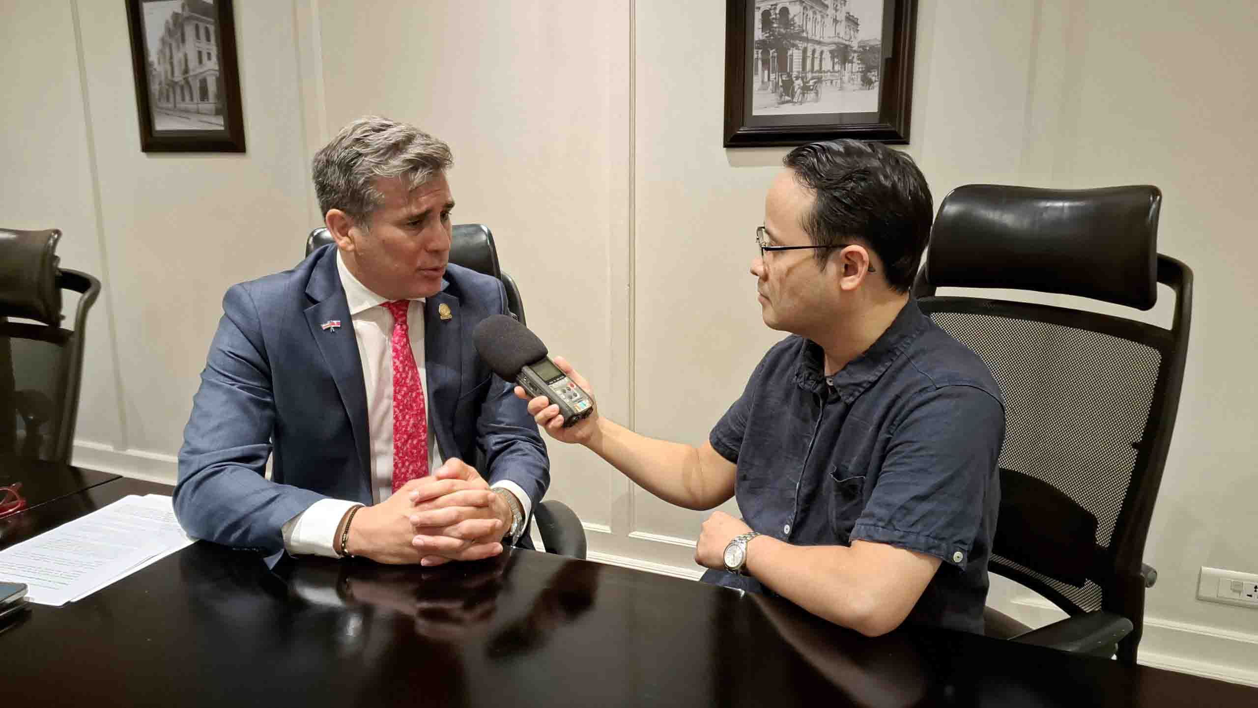El ministro de Comercio Exterior de Costa Rica, Manuel Tovar Rivera (i), concede entrevista al reportero de la Voz de Vietnam. (Foto: VOV) |