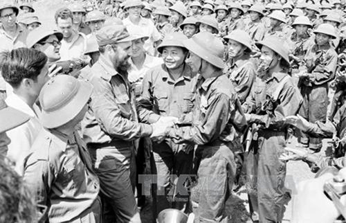 ![]() Fidel Castro se reúne con soldados del grupo Khe Sanh de las fuerzas de Liberación de Tri Thien-Hue