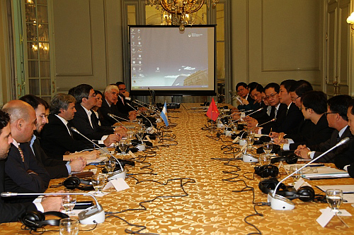 La reunión se desarrolló del 29 al 30 de octubre en Buenos Aires, la capital argentina en la que acordaron estrechar la cooperación bilateral en los sectores económico, comercial, inversionista, agrícola, energético, técnico, educativo, cultural, sanitario, forense, científico y tecnológico. Coincidieron también en el aumento de las operaciones mixtas, la inversión directa y la transferencia tecnológica entre las empresas de los dos países. Vietnam y Argentina abogaron por continuar desplegando de 2014 a 2016 proyectos del control de la fiebre aftosa, la conservación de productos agrícolas, el mejoramiento de la alimentación animal y el cultivo de quinoa en este país indochino. Asimismo acordaron continuar el intercambio cultural de 2015 a 2016.