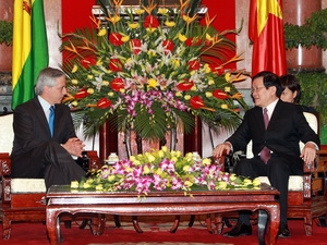 (VOVworld) - A pesar de la distancia geográfica, Vietnam y Bolivia tienen buena relación de amistad, afirmó el presidente de Vietnam, Truong Tan Sang en el recibimiento este martes al vice mandatario de Bolivia, Álvaro García Linera, de visita en Vietnam.