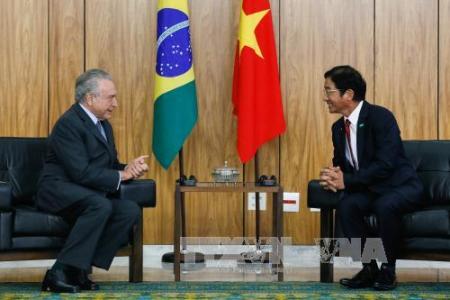![]() El embajador vietnamita Do Ba Khoa (d) y el presidente de Brasil, Michel Temer |
