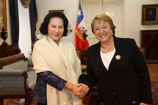 (VOVworld) - Durante una visita del 3 al 5 del corriente mes a Chile, la miembro del Buró Político del Partido Comunista y vicepresidenta de la Asamblea Nacional de Vietnam, Nguyen Thi Kim Ngan, se reunió en ocasiones separadas con la presidenta Michelle Bachelet; los titulares del Senado, Isabel Allende, y de la Cámara de Diputados, Aldo Cornejo; el Grupo Parlamentario de Amistad con Vietnam; y la ministra -directora del Servicio Nacional de la Mujer, Claudia Pascual.