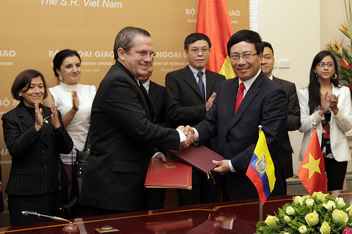 Con antelación, el canciller ecuatoriano, Ricardo Patiño fue recibido por el premier Nguyen Tan Dung. Vietnam concede importancia al fomento de la cooperación multifacética con Ecuador por el interés y el desarrollo mutuo. El jefe de gobierno anfitrión urgió a las partes a incrementar el intercambio de delegaciones, respaldarse mutuamente en los foros internacionales e impulsar los lazos económicos, comerciales, turísticos e inversionistas.