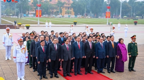 Líderes vietnamitas rinden homenaje al Presidente Ho Chi Minh con motivo de la fundación del PCV