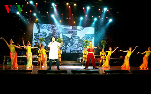 (VOVworld) –Una velada en honor del Partido Comunista de Vietnam se celebró el 18 de enero en Hanoi bajo el auspicio del Ministerio de Cultura, Deporte y Turismo. Más de 200 ofrecieron a los espectadores funciones que elogian los aportes del Partido y del presidente Ho Chi Minh, así como el patriotismo. El director del programa, artista destacado Do Truong An reveló al respecto: “Somos los artistas y estamos muy orgullosos al poder entonar las canciones e interpretar bailes en honor del Partido Comunista de Vietnam. Esperamos que el duodécimo Congreso Nacional del Partido se celebre con éxito, satisfaciendo la aspiración del Pueblo”.