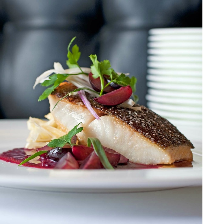 The sea bass, you can choose: I do it like put in on a plank and put it in the oven. You can bake it, you can fry it.