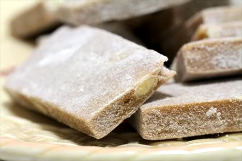 There’s no single recipe for this cake. The cook decides the amount of flour, ginger, and malts to use. In the cold weather, they use less glutinous rice flour. Mixing the flour with the honey requires patience, experience, and strength, so, for this step, a man is often enlisted. The cake has the fragrance of newly-harvested glutinous rice, the sweetness of sugarcane malt, the crunchy, yumminess of peeled peanuts, and the slightly spicy aroma of yellow ginger. The slight chewiness of “mochi”, and the sweetness of honey makes the cake so adorable. When you take a bite, the delicious cake melts in your mouth and the slight spiciness of yellow ginger warms your body. Enjoy Lam cake with a cup of hot tea is an impressive experience.